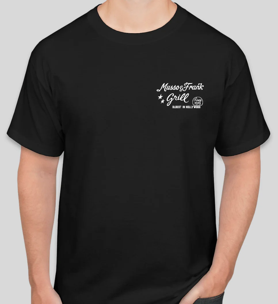 Musso & Frank Black Short Sleeve T-shirt with 105 Year Logo